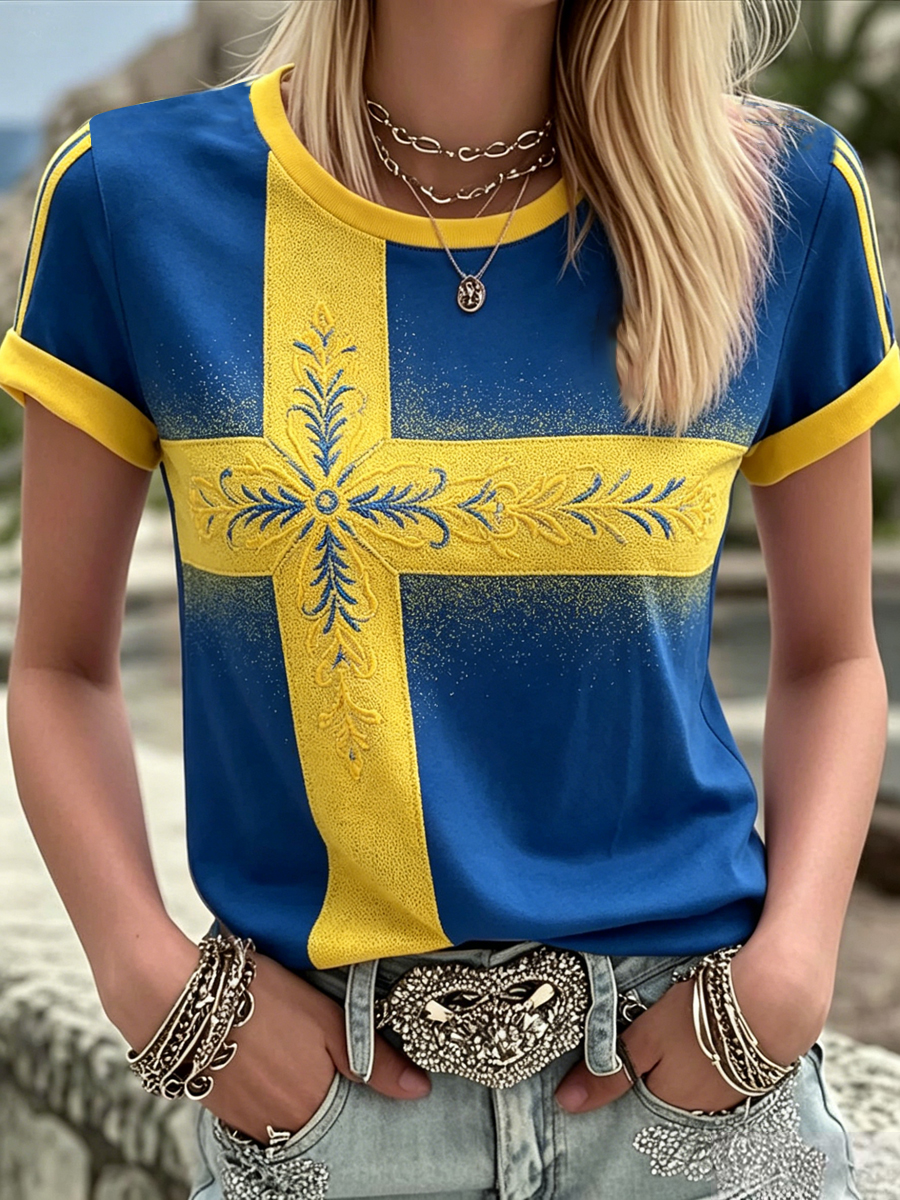 Kvinnors svenska midsommar Tryckt Casual Topp