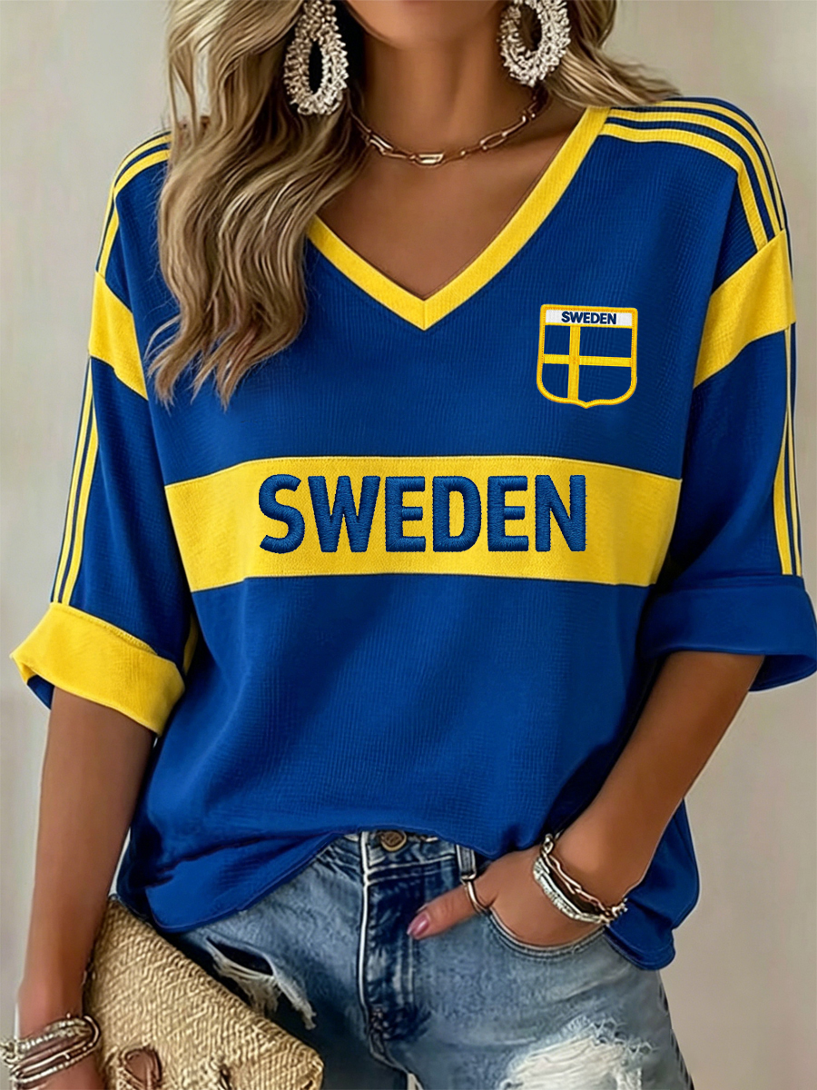 Damer Svensk Fotboll Tryck Avslappnad T-shirt