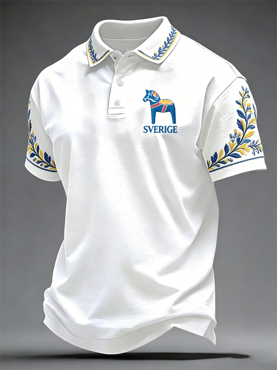 Herrtröja med svensk dalahästkonst – Valhalla – tryckt