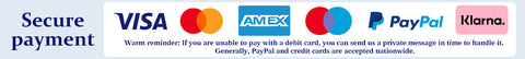 Paypal är en av de mest populära onlinebetalningsmetoderna i världen. Vi är fullt PayPal-verifierade så att du alltid kan handla tryggt.