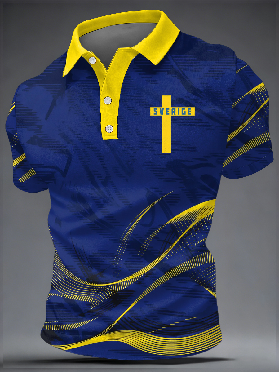 Mäns svenska Print Casual Topp