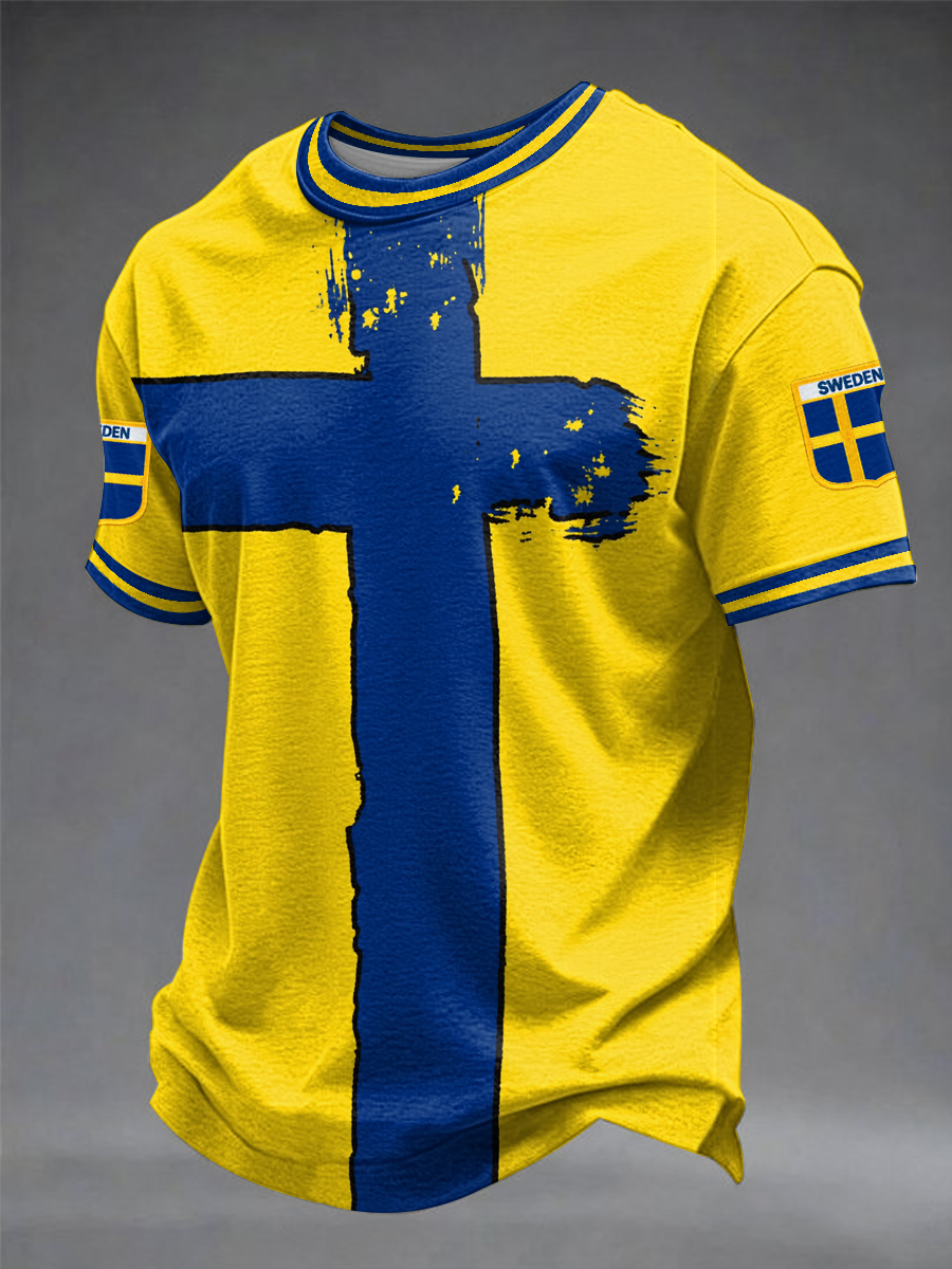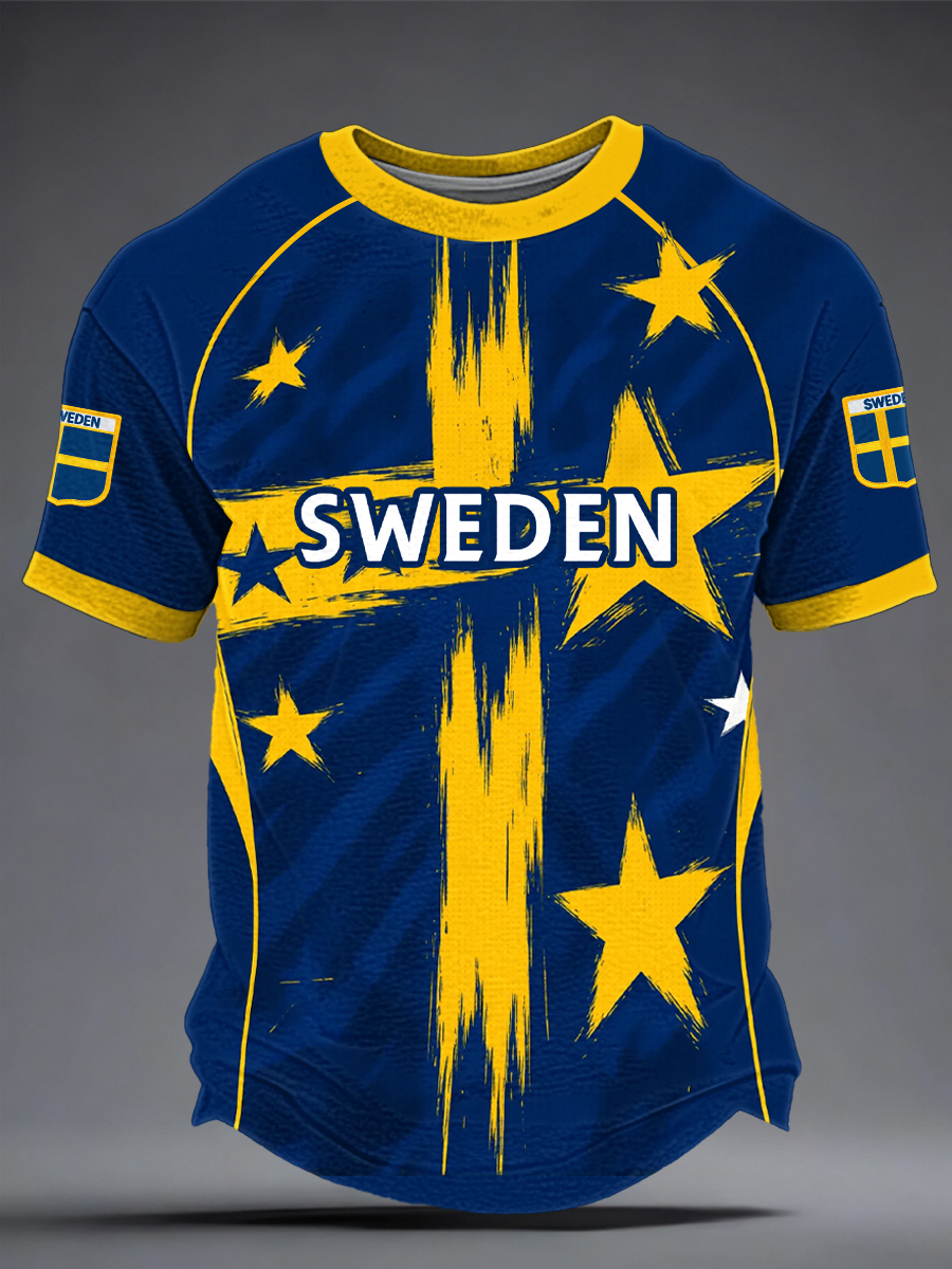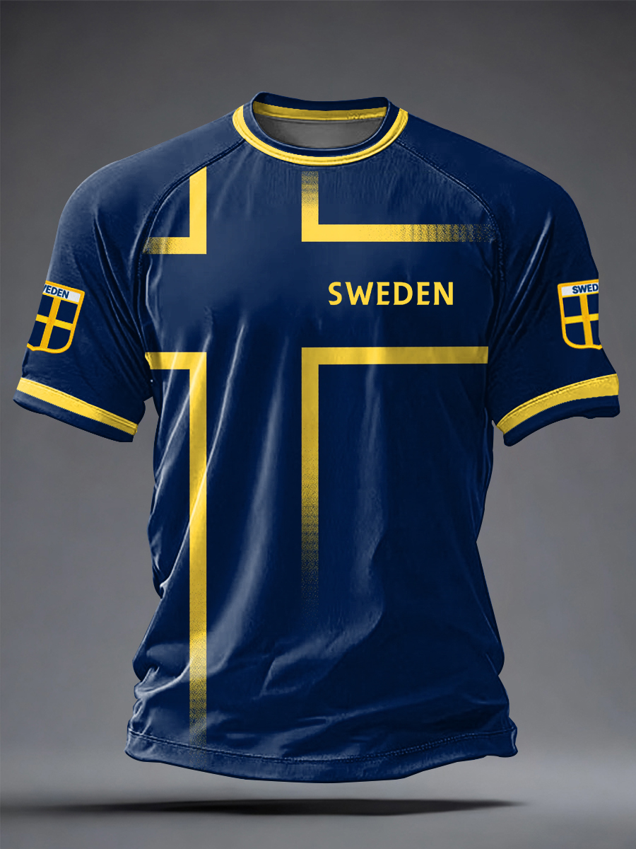 Herrtröja med svensk fotbollsprint, ledig stil